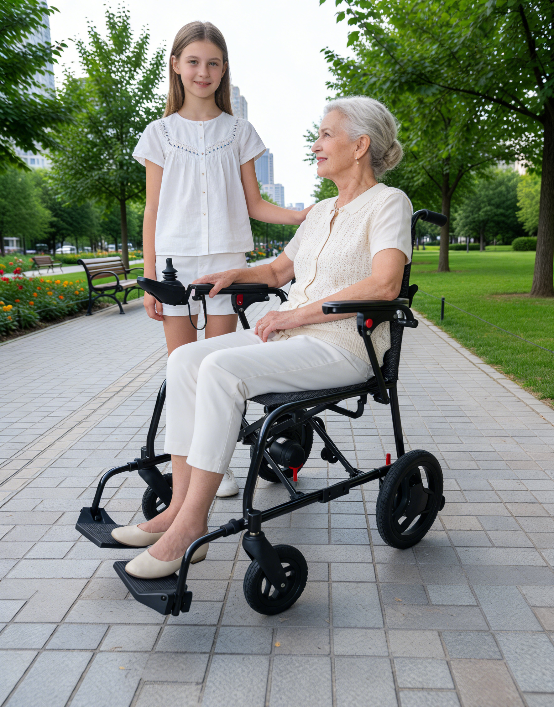 - Lightweight & Portable: Crafted from rare earth-doped magnesium alloy (Y, Ce, Nd, Gd), frames weigh 30-40% less than traditional aluminum, enabling easy folding and transport while maintaining load capacity up to 150kg. The whole wheelchair as light as 9kgs.